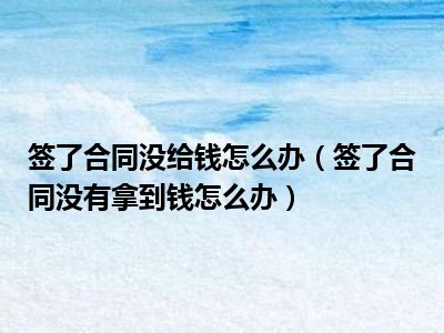 目前大家应该是对签了合同没有拿到钱怎么办比较感兴趣的,所以今天CC就来为大家整理了一些关于签了合同没有拿到钱怎么办方面的相关知识来分享给大家,希望大家会喜欢哦。