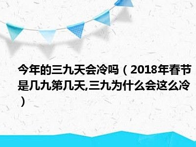 目前大家应该是对2018年春节是几九第几天,三九为什么会这么冷比较感兴趣的,所以今天小编CC就来为大家整理了一些关于2018年春节是几九第几天,三九为什么会这么冷方面的相关知识来分享给大家,希望大家会喜欢哦。