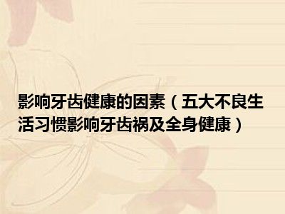 目前大家应该是对五大不良生活习惯影响牙齿祸及全身健康比较感兴趣的,所以今天小编CC就来为大家整理了一些关于五大不良生活习惯影响牙齿祸及全身健康方面的相关知识来分享给大家,希望大家会喜欢哦。