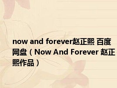 导读 目前是有很多朋友们对于Now And Forever 赵正熙作品这个信息比较感兴趣,那么小编也是收集了一些Now And Forever 赵正熙作品相关的信...