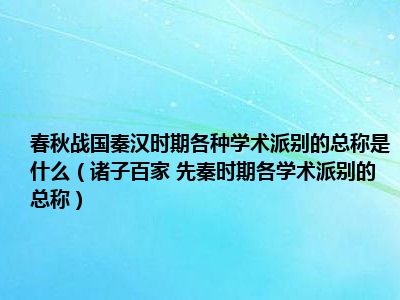 导读 目前是有很多朋友们对于诸子百家 先秦时期各学术派别的总称这个信息比较感兴趣,那么小编也是收集了一些诸子百家 先秦时期各学术派别的总...