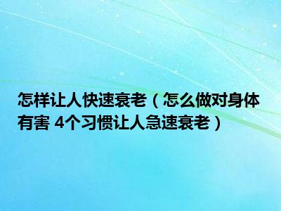 目前大家应该是对怎么做对身体有害 4个习惯让人急速衰老比较感兴趣的,所以今天小编CC就来为大家整理了一些关于怎么做对身体有害 4个习惯让人急速衰老方面的相关知识来分享给大家,希望大家会喜欢哦。