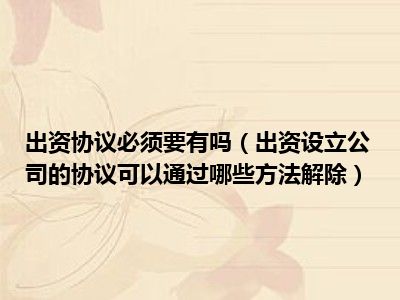 目前大家应该是对出资设立公司的协议可以通过哪些方法解除比较感兴趣的,所以今天CC就来为大家整理了一些关于出资设立公司的协议可以通过哪些方法解除方面的相关知识来分享给大家,希望大家会喜欢哦。