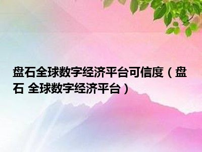 导读 目前是有很多朋友们对于盘石 全球数字经济平台这个信息比较感兴趣,那么小编也是收集了一些盘石 全球数字经济平台相关的信息来分享给大家...