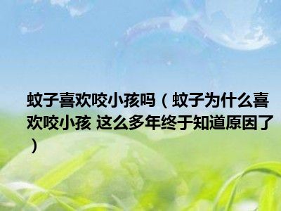 导读 目前大家应该是对蚊子为什么喜欢咬小孩 这么多年终于知道原因了比较感兴趣的,所以今天小编CC就来为大家整理了一些关于蚊子为什么喜欢咬小...