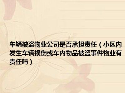 目前大家应该是对小区内发生车辆损伤或车内物品被盗事件,物业有责任吗比较感兴趣的,所以今天CC就来为大家整理了一些关于小区内发生车辆损伤或车内物品被盗事件,物业有责任吗方面的相关知识来分享给大家,希望大家会喜欢哦。