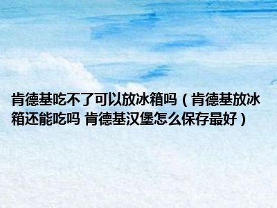 目前大家应该是对肯德基放冰箱还能吃吗 肯德基汉堡怎么保存最好比较感兴趣的,所以今天小编CC就来为大家整理了一些关于肯德基放冰箱还能吃吗 肯德基汉堡怎么保存最好方面的相关知识来分享给大家,希望大家会喜欢哦。