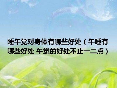 目前大家应该是对午睡有哪些好处 午觉的好处不止一二点比较感兴趣的,所以今天小编CC就来为大家整理了一些关于午睡有哪些好处 午觉的好处不止一二点方面的相关知识来分享给大家,希望大家会喜欢哦。