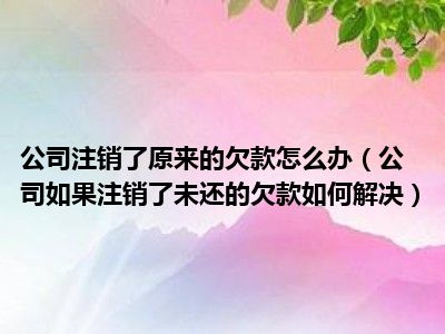 目前大家应该是对公司如果注销了未还的欠款如何解决比较感兴趣的,所以今天CC就来为大家整理了一些关于公司如果注销了未还的欠款如何解决方面的相关知识来分享给大家,希望大家会喜欢哦。