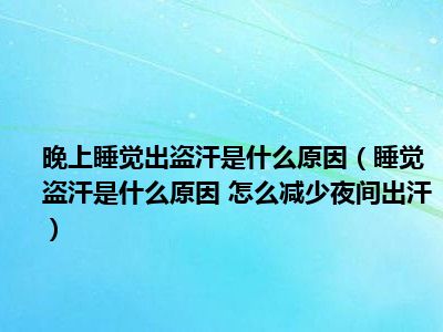 目前大家应该是对睡觉盗汗是什么原因 怎么减少夜间出汗比较感兴趣的,所以今天小编CC就来为大家整理了一些关于睡觉盗汗是什么原因 怎么减少夜间出汗方面的相关知识来分享给大家,希望大家会喜欢哦。