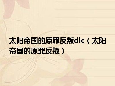 导读目前是有很多朋友们对于太阳帝国的原罪:反叛这个信息比较感兴趣,那么小编也是收集了一些太阳帝国的原罪:反叛相关的信息来分享给大家,希...