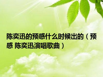 导读 目前是有很多朋友们对于预感 陈奕迅演唱歌曲这个信息比较感兴趣,那么小编也是收集了一些预感 陈奕迅演唱歌曲相关的信息来分享给大家,希...
