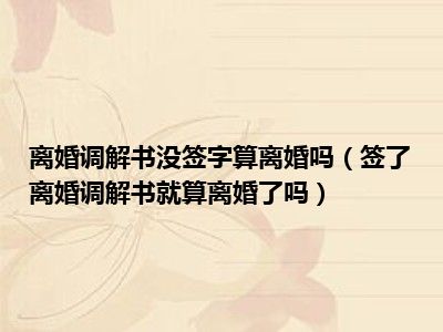 目前大家应该是对签了离婚调解书就算离婚了吗比较感兴趣的,所以今天CC就来为大家整理了一些关于签了离婚调解书就算离婚了吗方面的相关知识来分享给大家,希望大家会喜欢哦。