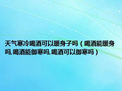 目前大家应该是对喝酒能暖身吗,喝酒能御寒吗,喝酒可以御寒吗比较感兴趣的,所以今天小编CC就来为大家整理了一些关于喝酒能暖身吗,喝酒能御寒吗,喝酒可以御寒吗方面的相关知识来分享给大家,希望大家会喜欢哦。