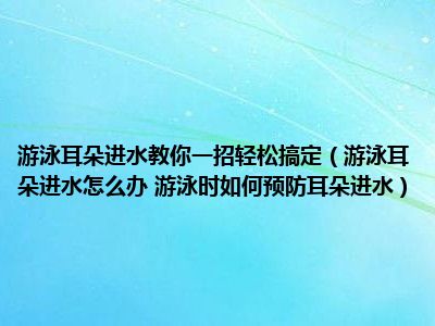 目前大家应该是对游泳耳朵进水怎么办 游泳时如何预防耳朵进水比较感兴趣的,所以今天小编CC就来为大家整理了一些关于游泳耳朵进水怎么办 游泳时如何预防耳朵进水方面的相关知识来分享给大家,希望大家会喜欢哦。