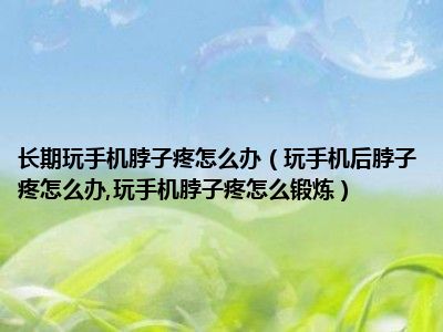 目前大家应该是对玩手机后脖子疼怎么办,玩手机脖子疼怎么锻炼比较感兴趣的,所以今天小编CC就来为大家整理了一些关于玩手机后脖子疼怎么办,玩手机脖子疼怎么锻炼方面的相关知识来分享给大家,希望大家会喜欢哦。