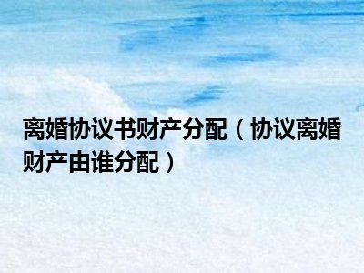 目前大家应该是对协议离婚财产由谁分配比较感兴趣的,所以今天CC就来为大家整理了一些关于协议离婚财产由谁分配方面的相关知识来分享给大家,希望大家会喜欢哦。
