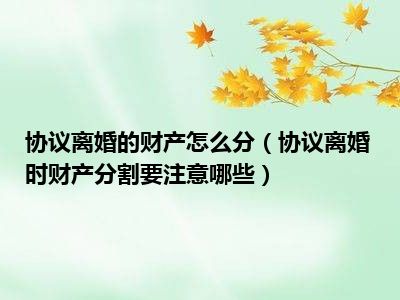 目前大家应该是对协议离婚时财产分割要注意哪些比较感兴趣的,所以今天CC就来为大家整理了一些关于协议离婚时财产分割要注意哪些方面的相关知识来分享给大家,希望大家会喜欢哦。