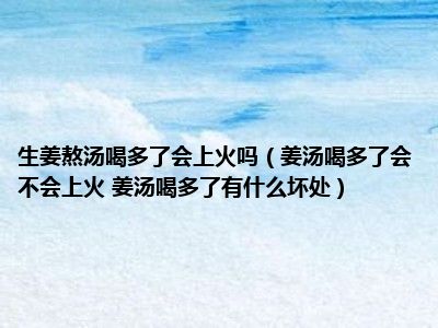 目前大家应该是对姜汤喝多了会不会上火 姜汤喝多了有什么坏处比较感兴趣的,所以今天小编CC就来为大家整理了一些关于姜汤喝多了会不会上火 姜汤喝多了有什么坏处方面的相关知识来分享给大家,希望大家会喜欢哦。
