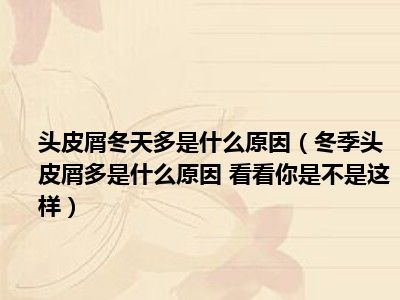 目前大家应该是对冬季头皮屑多是什么原因 看看你是不是这样比较感兴趣的,所以今天小编CC就来为大家整理了一些关于冬季头皮屑多是什么原因 看看你是不是这样方面的相关知识来分享给大家,希望大家会喜欢哦。