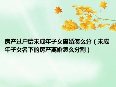 目前大家应该是对未成年子女名下的房产离婚怎么分割比较感兴趣的,所以今天CC就来为大家整理了一些关于未成年子女名下的房产离婚怎么分割方面的相关知识来分享给大家,希望大家会喜欢哦。