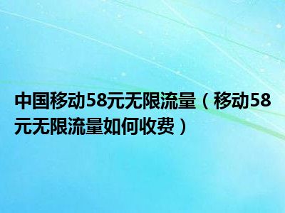 目前应该是有很多小伙伴对于移动58元无限流量如何收费方面的信息比较感兴趣,现在小编就收集了一些与移动58元无限流量如何收费相关的信息来分享给大家,感兴趣的小伙伴可以接着往下看,希望会帮助到你哦。