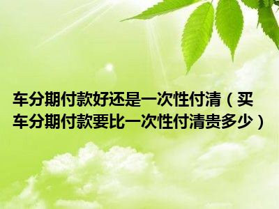 目前应该是有很多小伙伴对于买车分期付款要比一次性付清贵多少方面的信息比较感兴趣,现在小编就收集了一些与买车分期付款要比一次性付清贵多少相关的信息来分享给大家,感兴趣的小伙伴可以接着往下看,希望会帮助到你哦。