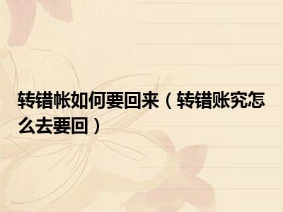 目前大家应该是对转错账究怎么去要回比较感兴趣的,所以今天CC就来为大家整理了一些关于转错账究怎么去要回方面的相关知识来分享给大家,希望大家会喜欢哦。
