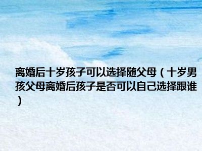 目前大家应该是对十岁男孩父母离婚后孩子是否可以自己选择跟谁比较感兴趣的,所以今天CC就来为大家整理了一些关于十岁男孩父母离婚后孩子是否可以自己选择跟谁方面的相关知识来分享给大家,希望大家会喜欢哦。