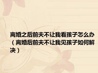 目前大家应该是对离婚后前夫不让我见孩子如何解决比较感兴趣的,所以今天CC就来为大家整理了一些关于离婚后前夫不让我见孩子如何解决方面的相关知识来分享给大家,希望大家会喜欢哦。