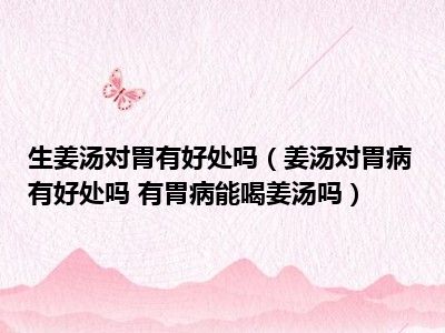目前大家应该是对姜汤对胃病有好处吗 有胃病能喝姜汤吗比较感兴趣的,所以今天小编CC就来为大家整理了一些关于姜汤对胃病有好处吗 有胃病能喝姜汤吗方面的相关知识来分享给大家,希望大家会喜欢哦。
