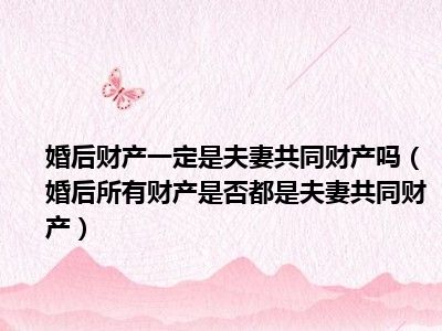 目前大家应该是对婚后所有财产是否都是夫妻共同财产比较感兴趣的,所以今天CC就来为大家整理了一些关于婚后所有财产是否都是夫妻共同财产方面的相关知识来分享给大家,希望大家会喜欢哦。