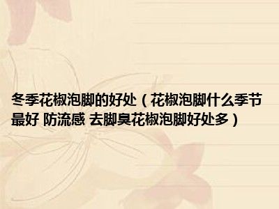目前大家应该是对花椒泡脚什么季节最好 防流感 去脚臭,花椒泡脚好处多!比较感兴趣的,所以今天小编CC就来为大家整理了一些关于花椒泡脚什么季节最好 防流感 去脚臭,花椒泡脚好处多!方面的相关知识来分享给大家,希望大家会喜欢哦。