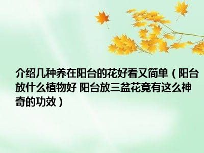 目前大家应该是对阳台放什么植物好 阳台放三盆花竟有这么神奇的功效比较感兴趣的,所以今天小编CC就来为大家整理了一些关于阳台放什么植物好 阳台放三盆花竟有这么神奇的功效方面的相关知识来分享给大家,希望大家会喜欢哦。