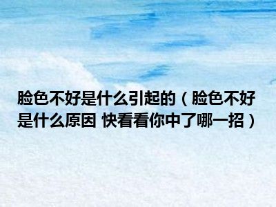 目前大家应该是对脸色不好是什么原因 快看看你中了哪一招比较感兴趣的,所以今天小编CC就来为大家整理了一些关于脸色不好是什么原因 快看看你中了哪一招方面的相关知识来分享给大家,希望大家会喜欢哦。