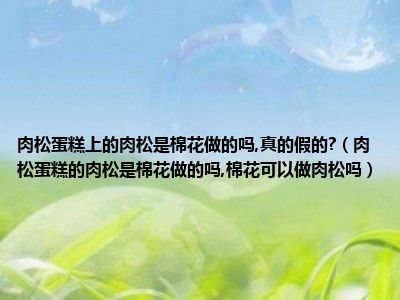 目前大家应该是对肉松蛋糕的肉松是棉花做的吗,棉花可以做肉松吗比较感兴趣的,所以今天小编CC就来为大家整理了一些关于肉松蛋糕的肉松是棉花做的吗,棉花可以做肉松吗方面的相关知识来分享给大家,希望大家会喜欢哦。