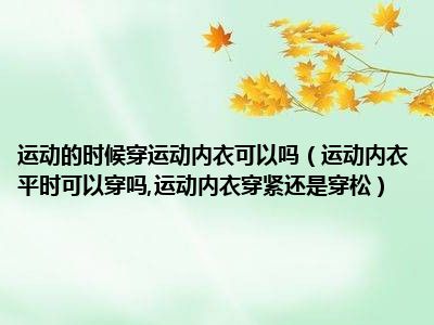 目前大家应该是对运动内衣平时可以穿吗,运动内衣穿紧还是穿松比较感兴趣的,所以今天小编CC就来为大家整理了一些关于运动内衣平时可以穿吗,运动内衣穿紧还是穿松方面的相关知识来分享给大家,希望大家会喜欢哦。
