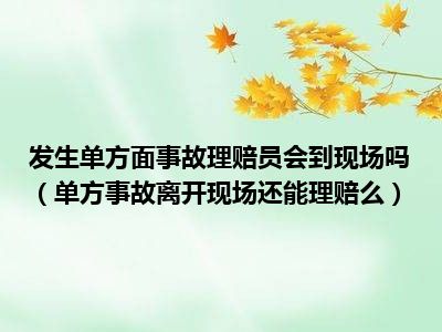 单方事故离开现场是不能理赔的,被保险机动车发生道路交通事故,被保险人或者受害人通知保险公司的,保险公司才会理赔,被保险人应当及时采取合理、必要的施救和保护措施,并在事故发生后及时通知保险人。
