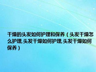 导读目前大家应该是对头发干燥怎么护理,头发干燥如何护理,头发干燥如何保养比较感兴趣的,所以今天小编CC就来为大家整理了一些关于头发干燥怎么...
