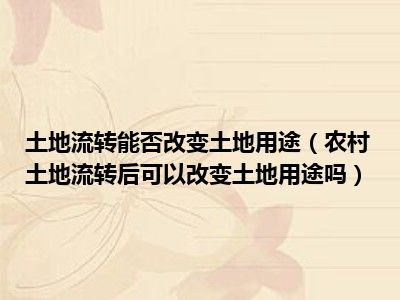 目前大家应该是对农村土地流转后可以改变土地用途吗比较感兴趣的,所以今天CC就来为大家整理了一些关于农村土地流转后可以改变土地用途吗方面的相关知识来分享给大家,希望大家会喜欢哦。