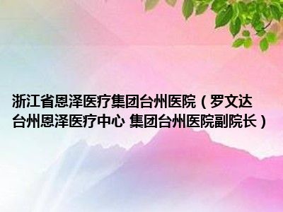 导读 目前是有很多朋友们对于罗文达 台州恩泽医疗中心 集团台州医院副院长这个信息比较感兴趣,那么小编也是收集了一些罗文达 台州恩泽医疗中...