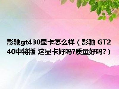 相信目前很多小伙伴对于影驰 GT240中将版 这显卡好吗?质量好吗?都比较感兴趣,那么小编今天在网上也是收集了一些与影驰 GT240中将版 这显卡好吗?质量好吗?相关的信息来分享给大家,希望能够帮助到大家哦。