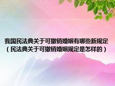 目前大家应该是对民法典关于可撤销婚姻规定是怎样的比较感兴趣的,所以今天CC就来为大家整理了一些关于民法典关于可撤销婚姻规定是怎样的方面的相关知识来分享给大家,希望大家会喜欢哦。