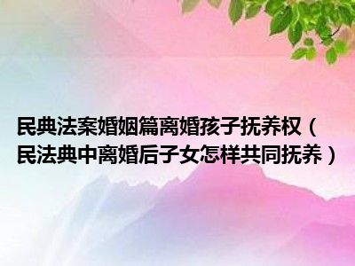 目前大家应该是对民法典中离婚后子女怎样共同抚养比较感兴趣的,所以今天CC就来为大家整理了一些关于民法典中离婚后子女怎样共同抚养方面的相关知识来分享给大家,希望大家会喜欢哦。