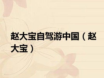 导读 目前是有很多朋友们对于赵大宝这个信息比较感兴趣,那么小编也是收集了一些赵大宝相关的信息来分享给大家,希望你会喜欢哦。