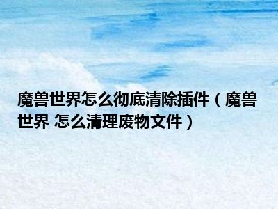 相信目前很多小伙伴对于魔兽世界 怎么清理废物文件都比较感兴趣,那么小编今天在网上也是收集了一些与魔兽世界 怎么清理废物文件相关的信息来分享给大家,希望能够帮助到大家哦。