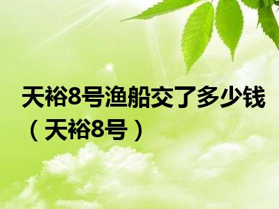 导读目前是有很多朋友们对于天裕8号这个信息比较感兴趣,那么小编也是收集了一些天裕8号相关的信息来分享给大家,希望你会喜欢哦。1、天裕8号...