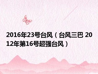 1、超强台风三巴(英语:Sanba,国际编号:1216)为2012年第16个被命名的风暴。