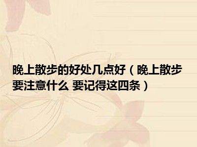 目前大家应该是对晚上散步要注意什么 要记得这四条比较感兴趣的,所以今天小编CC就来为大家整理了一些关于晚上散步要注意什么 要记得这四条方面的相关知识来分享给大家,希望大家会喜欢哦。