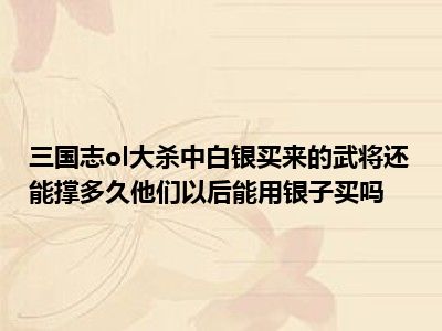 导读相信目前很多小伙伴对于盛大三国杀ol中银两买的武将能用多久,是不是以后都能用银两买?都比较感兴趣,那么小编今天在网上也是收集了一些...